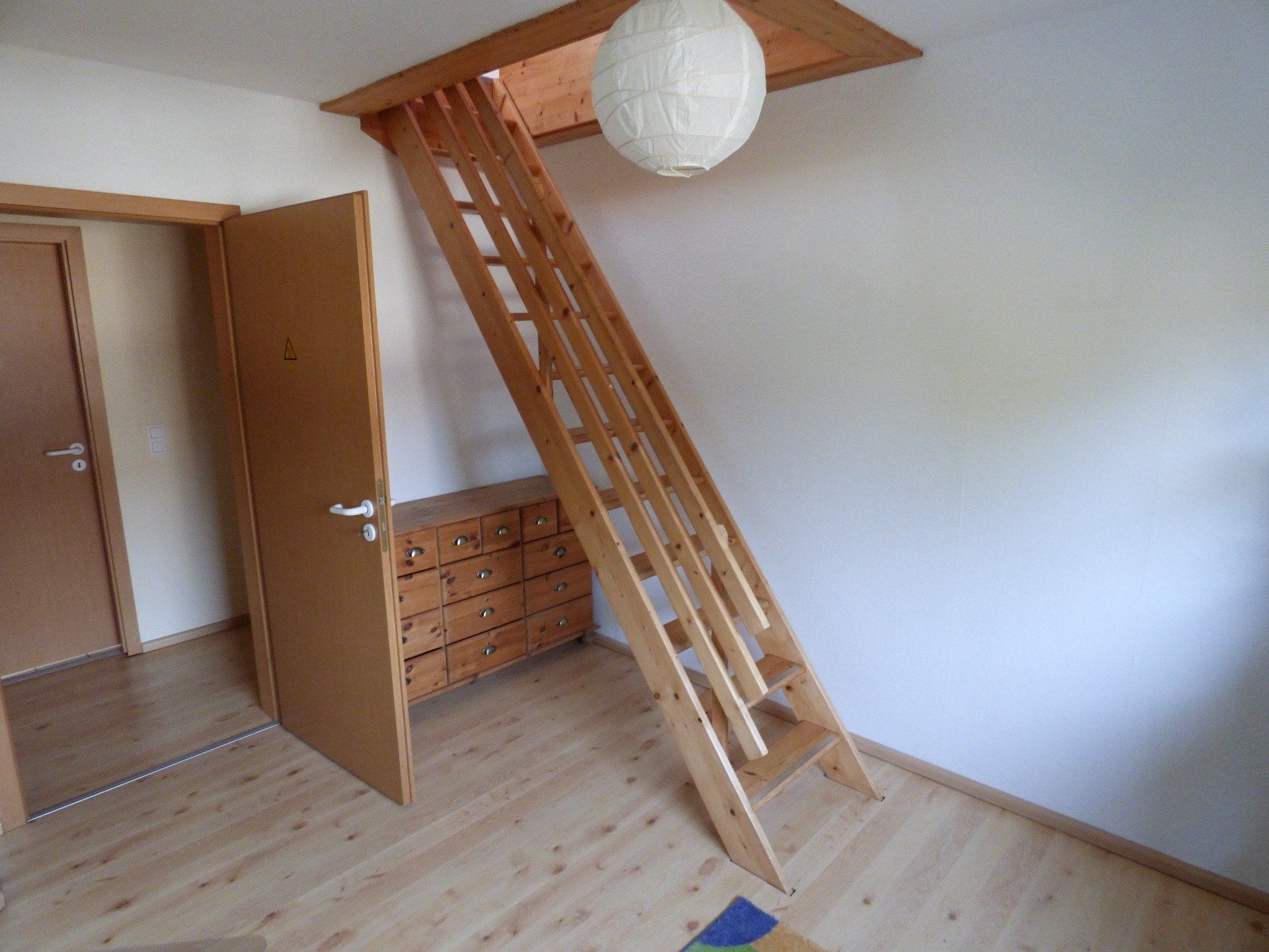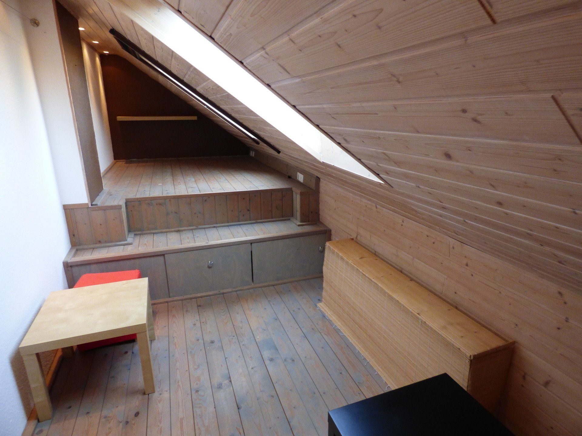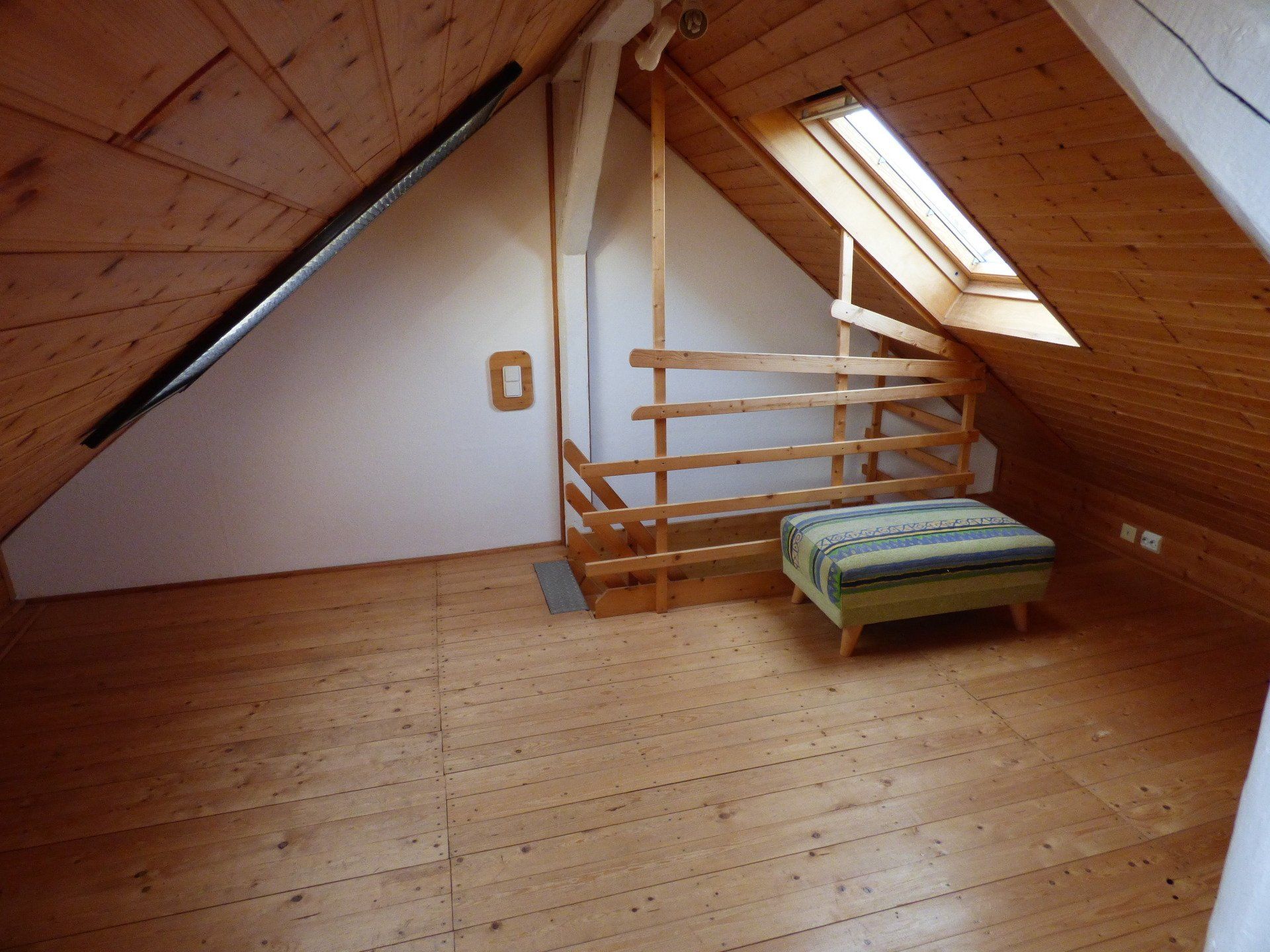 Der Dachboden des Objektes wurde ausgebaut. Auf diese Weise ist ein gemütliches Mansardenzimmer entstanden, welches als Hobbyraum oder als Schlaflounge genutzt werden kann.