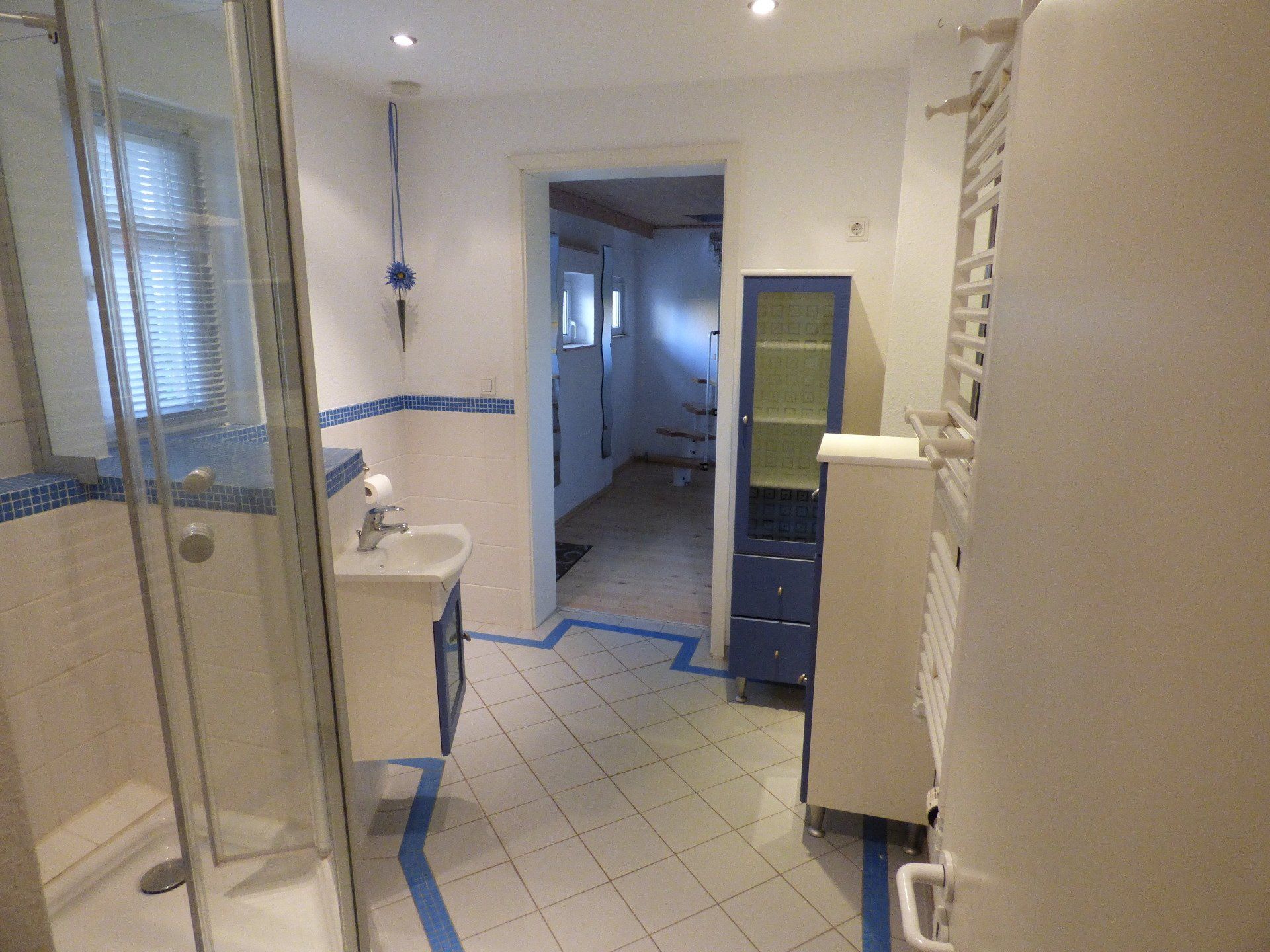 Das im Gästetrakt vorhandene Bad verfügt über Dusche, Waschbecken und WC.